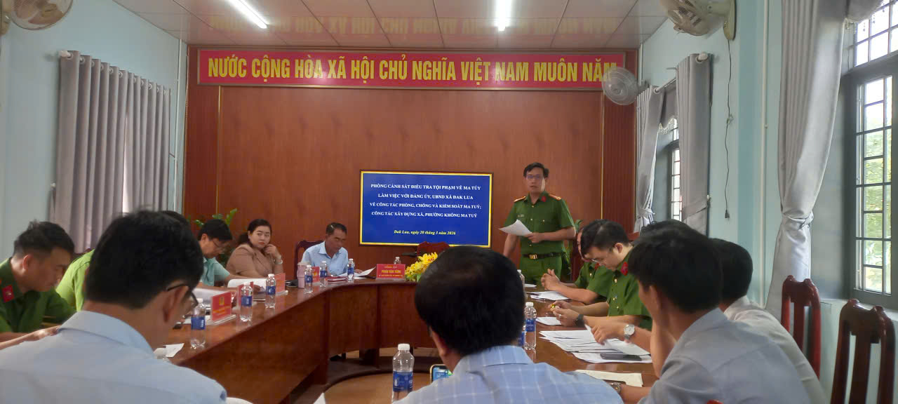 Phát biểu tại buổi làm việc, lãnh đạo Phòng Cảnh sát điều tra tội phạm về Ma túy (PC04) nhấn mạnh việc xây dựng và duy trì "Xã không ma túy" sau khi địa phương đã được công nhận không chỉ là nhiệm vụ của lực lượng Công an mà là trách nhiệm của cả hệ thống chính trị. Đoàn công tác đề nghị xã Đak Lua tập trung vào các nhóm giải pháp: